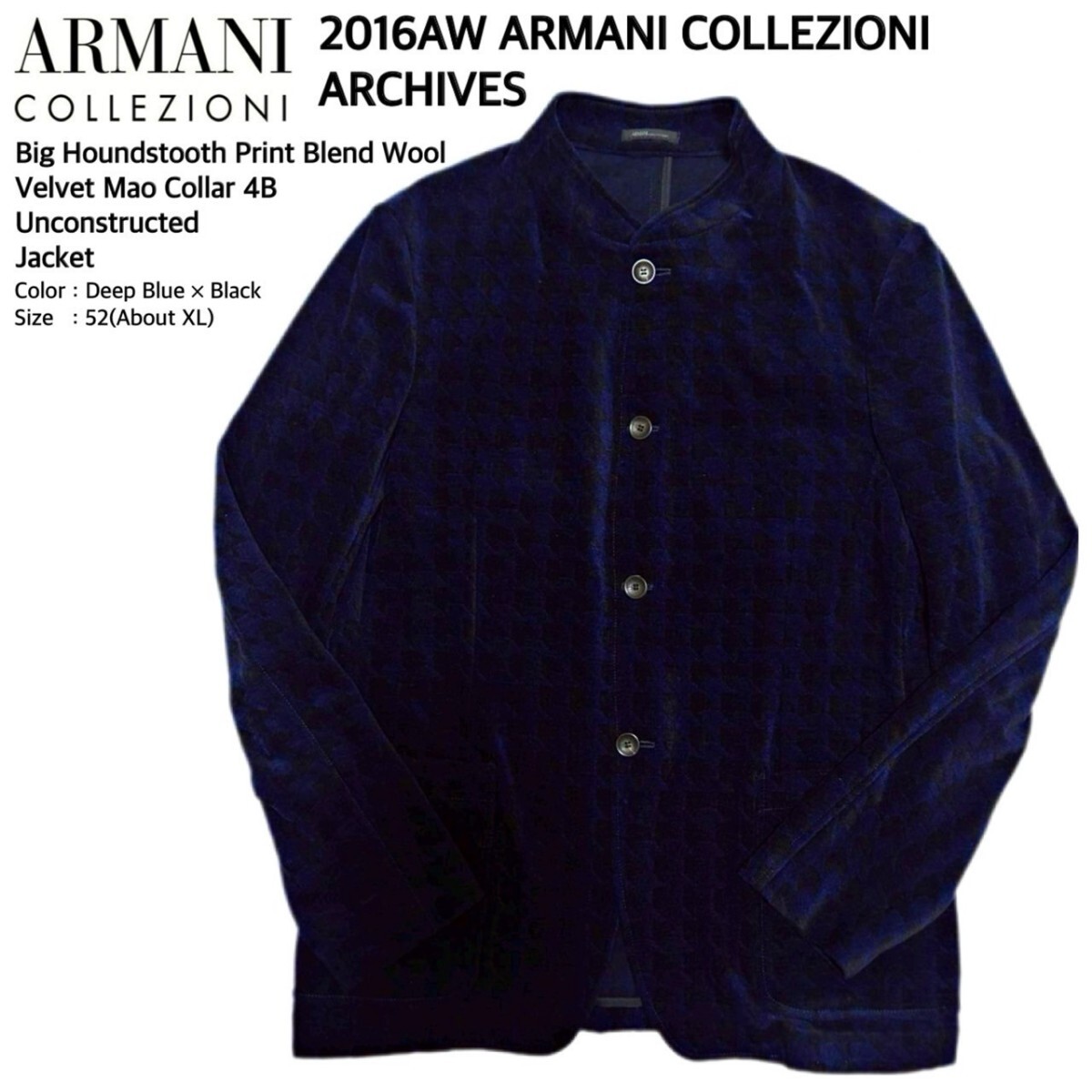 - 新品 2016AW ARMANI COLLEZIONI アルマーニコレッツォーニ 国内正規品 最高級千鳥格子柄ベロアマオカラー4Bアンコンジャケット 52(XL相当)