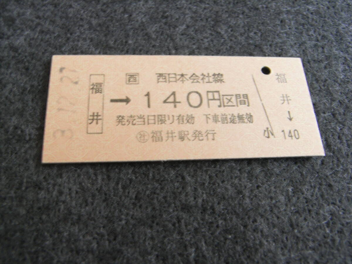 - 北陸本線 福井→西日本会社線140円区間 平成3年12月27日 社 福井駅発行 JR西日本