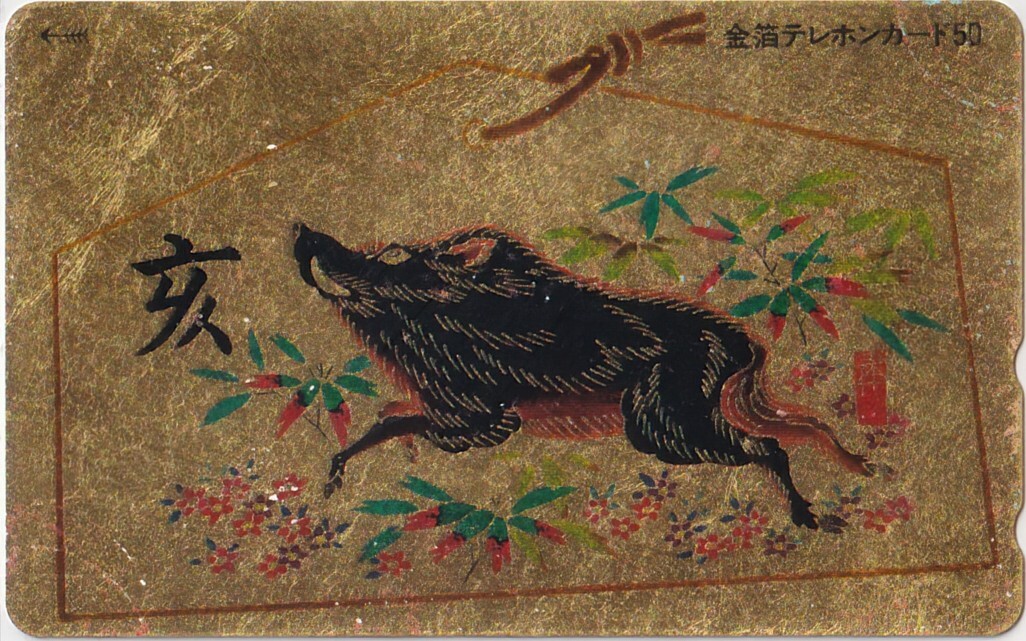 - =猪 亥= 「純金箔〜絵馬」販売テレカ #w