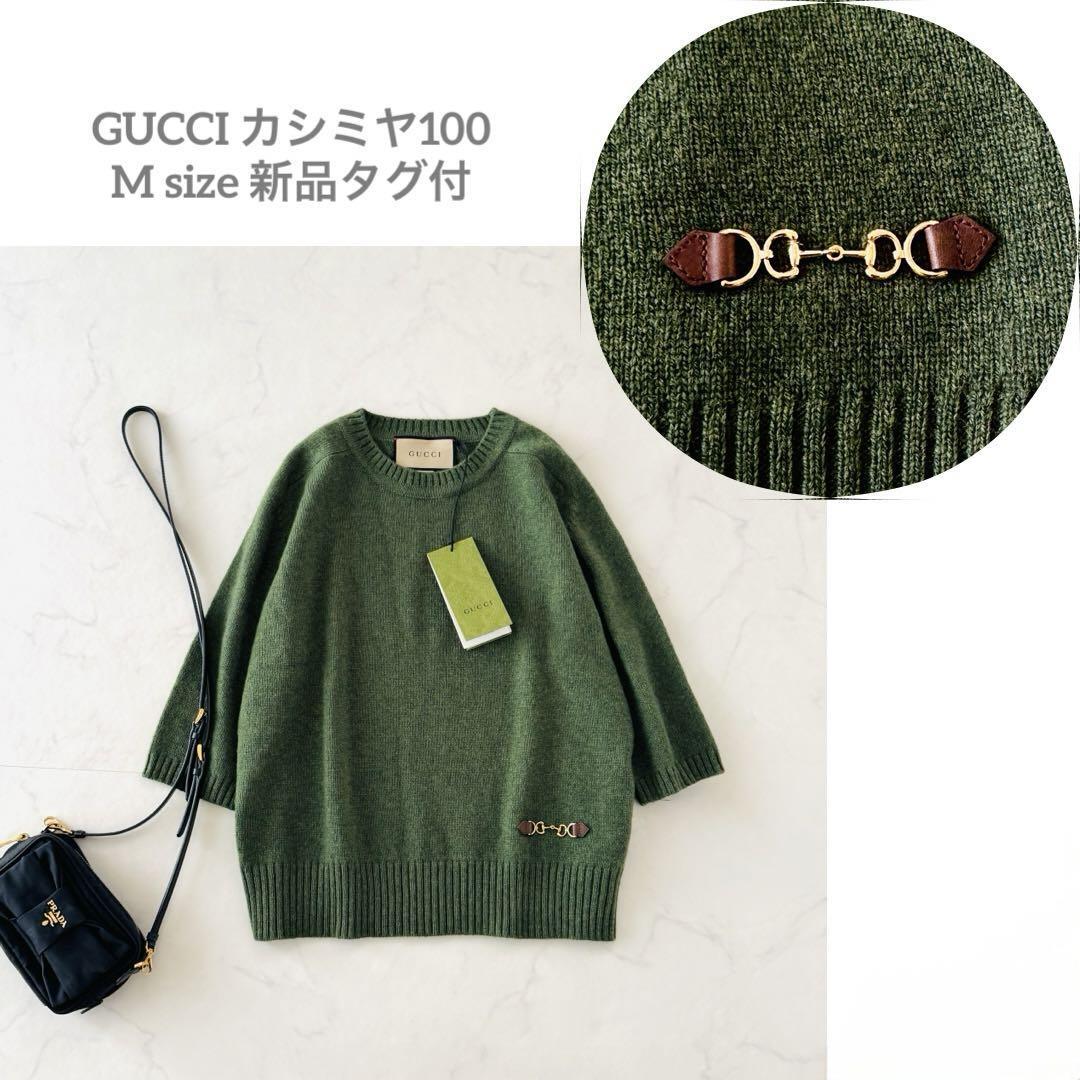 > グッチ GUCCI ホースビット カシミヤ 半袖 ニット グリーン カシミヤ100% クルーネック 新品タグ付き ロゴ