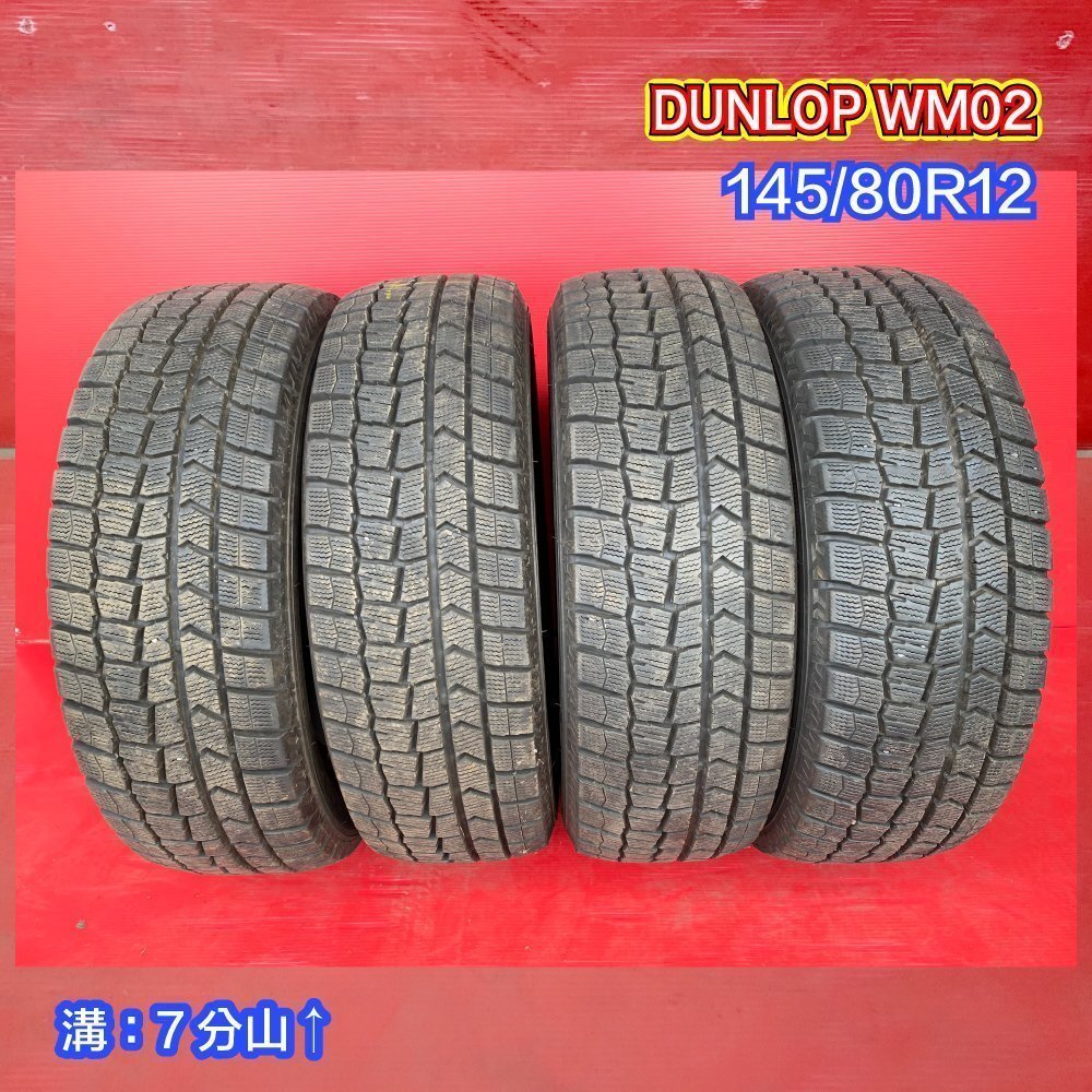 - 【送料無料】中古スタッドレスタイヤ 145/80R13 2018年製↑ 7分山↑ DUNLOP WM02 4本SET【41204364】【47140593】