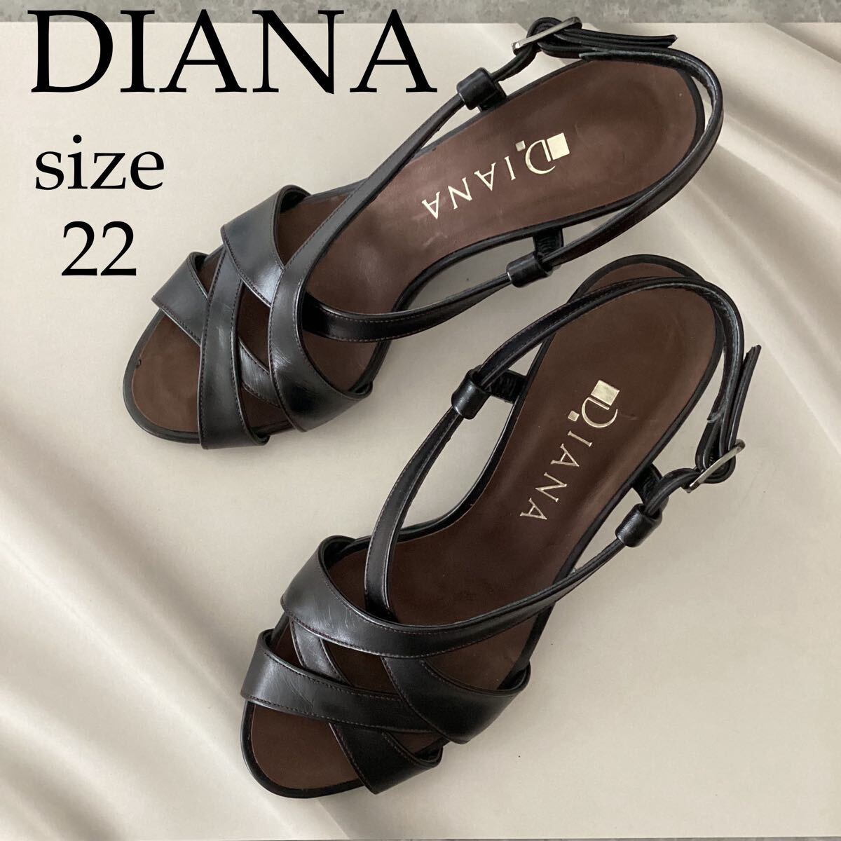 > DIANA ブラック ストラップサンダル 22