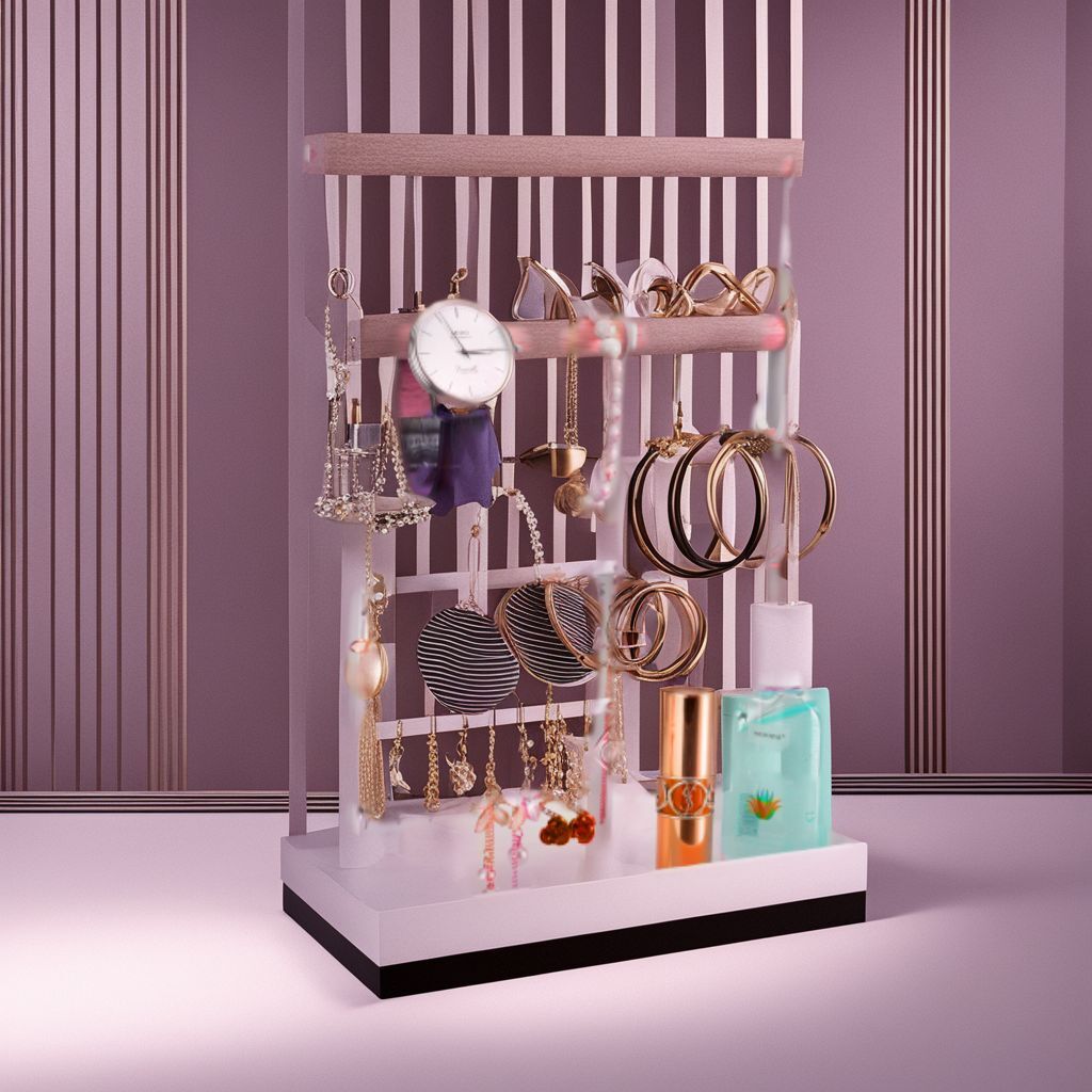 - 大容量アクセサリースタンド 12フック 天然木