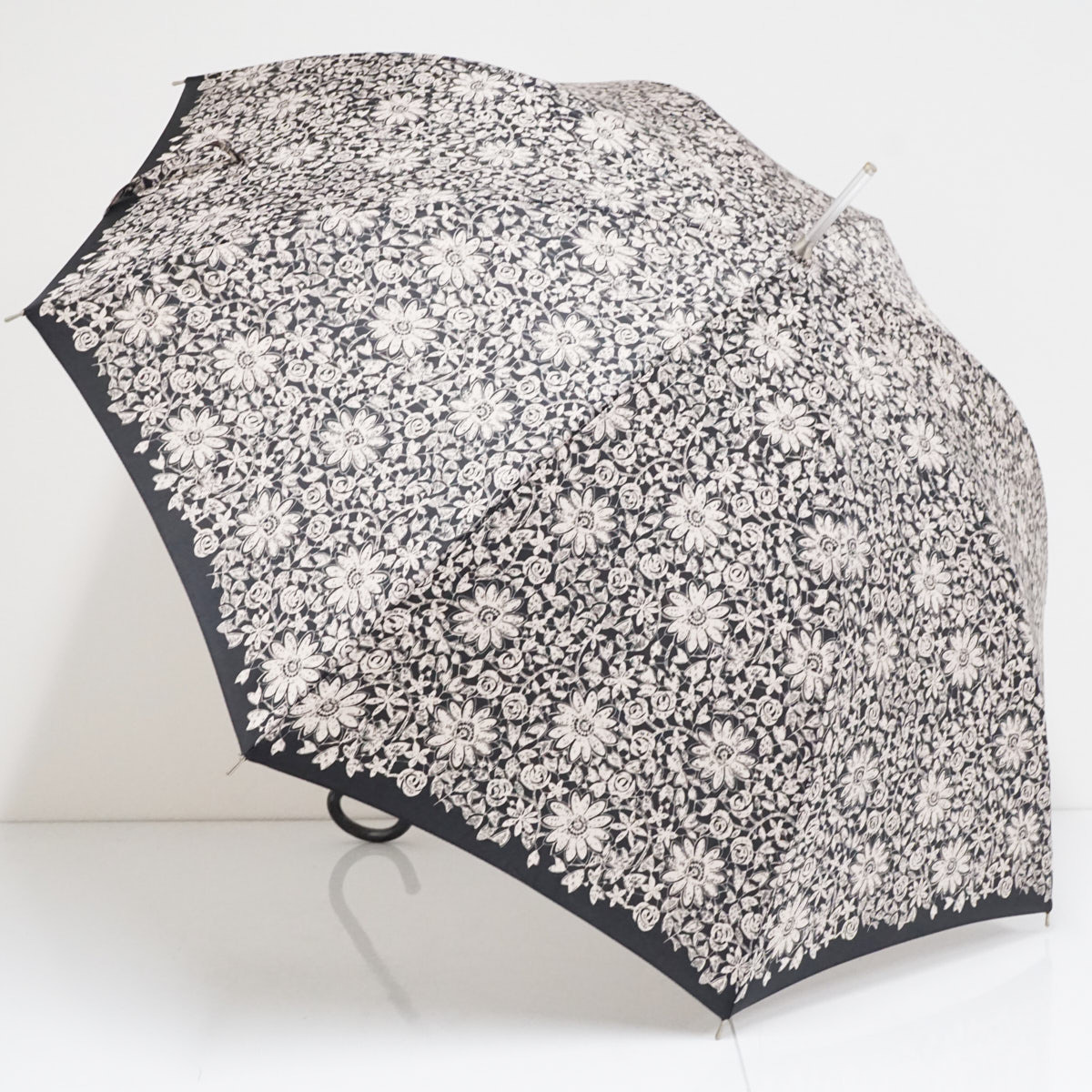 > NINA RICCI ニナリッチ 傘 USED美品 フラワープリント 花 グラスファイバーフレーム ブラック 60cm A3225