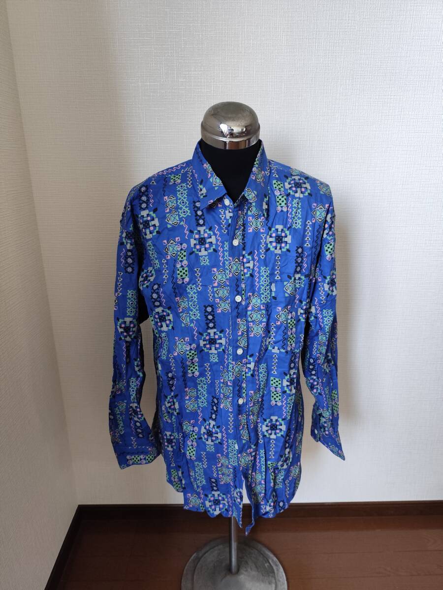 > ΣPLENTY TOUGH フリーサイズ 長袖シャツ 青色系 ブルー 柄物 メンズ シャツ ボタン カラフル アブストラクトデザインΣE51160