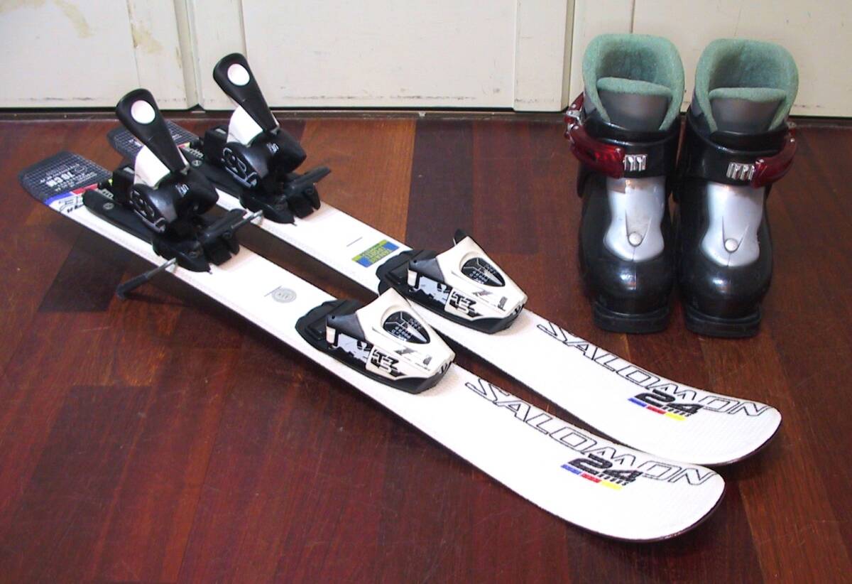 > SALOMON/サロモン 24H RACE ジュニア用カービングスキー3点 SALOMON板70㎝&調整ビンディング HEADブーツ15-16.5㎝ソール長201㎜ 美品です
