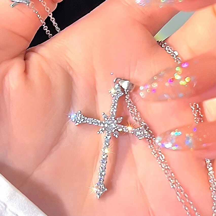 - 新品★送料無料★輝きスパーク 虹色ダイヤ十字架クロス プラチナ仕上925シルバーネックレス誕生日プレゼント旅行連休秋ギフト国内発送