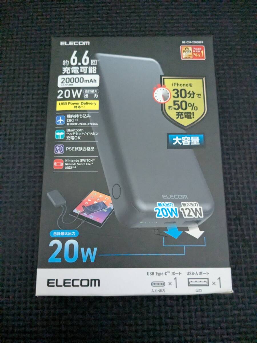 > ◎0709u1943 エレコム モバイルバッテリー 20000mAh 大容量 ( USB PD対応 ) 20W Type-C×1 / USB-A×1 ブラック DE-C34-20000BK