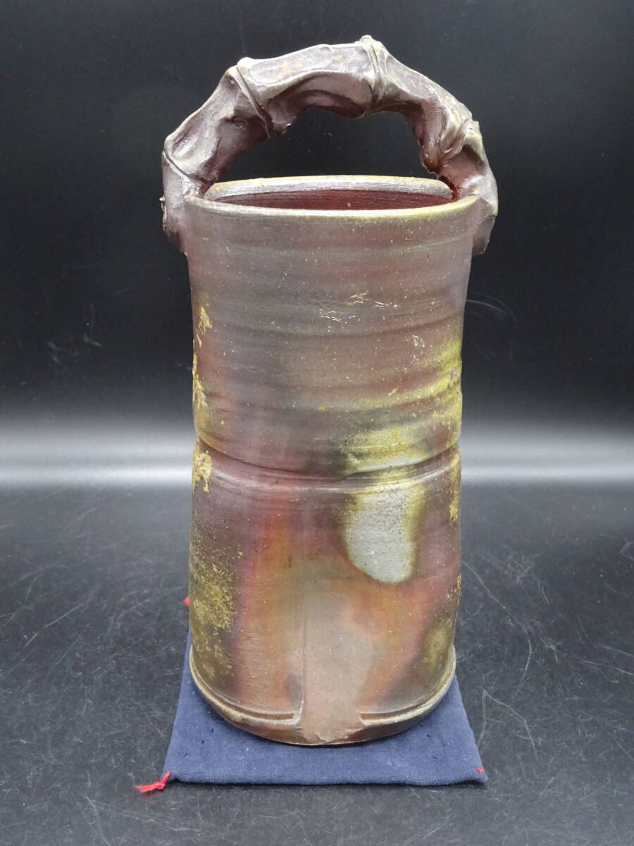 - 備前焼 作家作品 陶印有り ★備前手桶花入れ 紙箱付 花器 茶碗 壺 茶道具