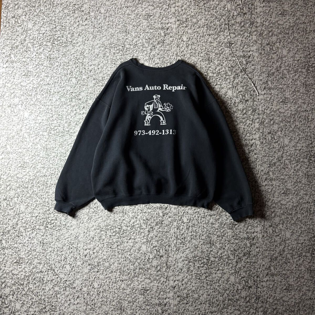 > 【グッドレギュラー】バックプリント オーバーサイズ 極太アームスウェットシャツ ブラック 2XLサイズ 古着 肉厚 ヘビーウェイト
