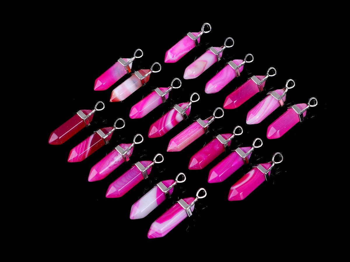 - ゆうパケ発送★天然石 ピンク瑪瑙 六角柱ペンダントトップ 20点セット ピンクメノウ おまとめ チャーム アクセサリーパーツ MSY-Nh18