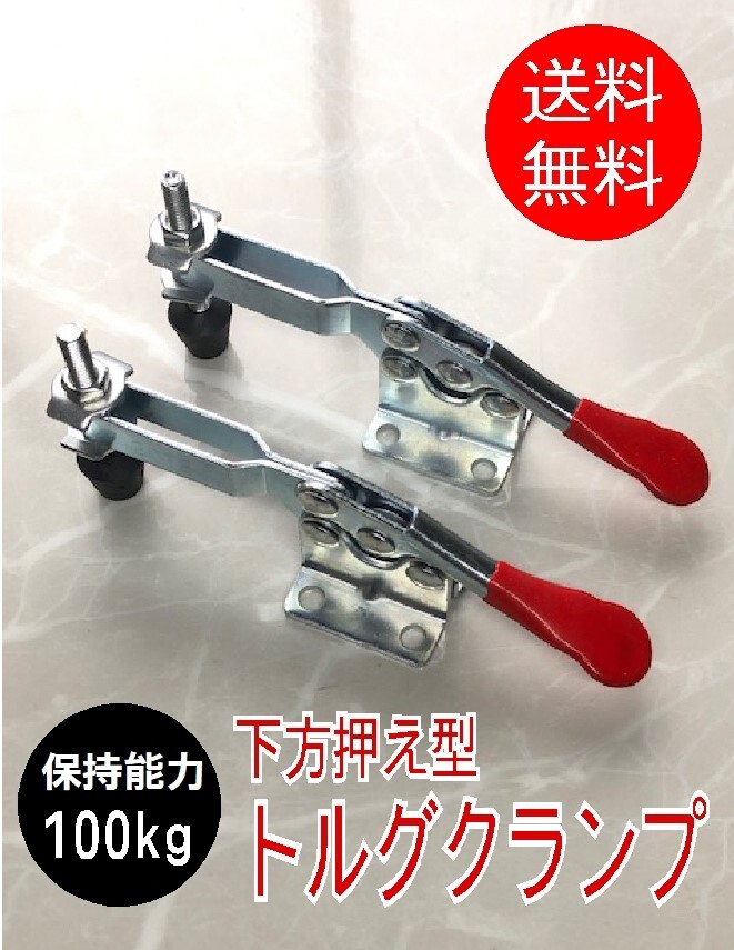 - 【2個セット】全長145mm 中型 トルグクランプ 下方押え型 保持能力100kg ハンドル横型