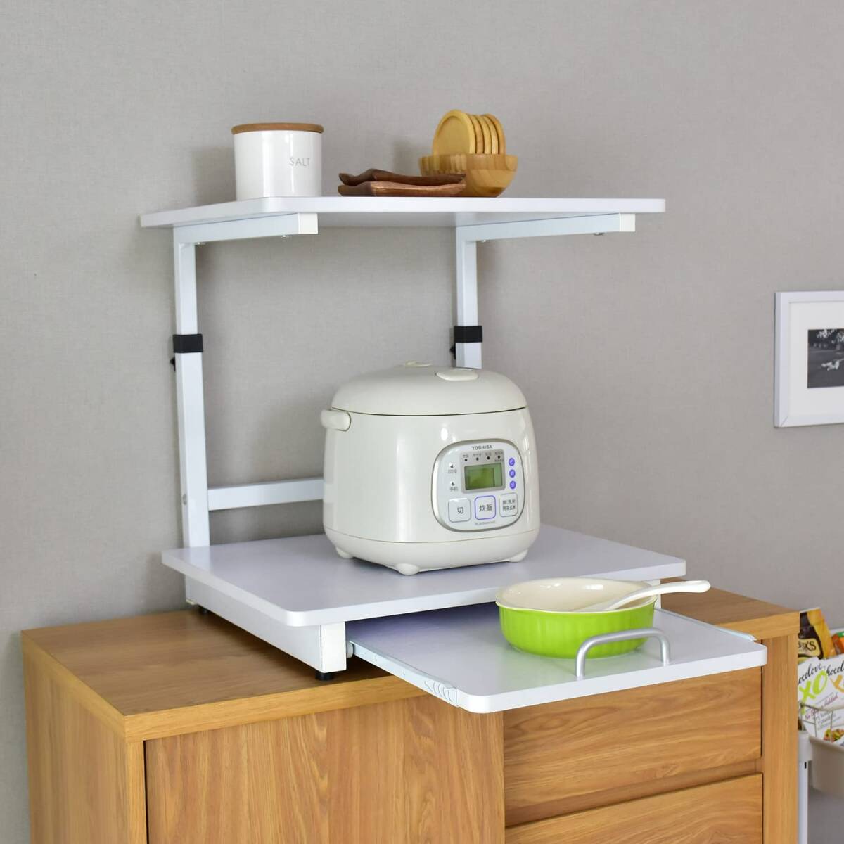 - 高さ調整可能なスライド棚付きレンジ台 キッチンラック 高品質 安全設計 操作簡単