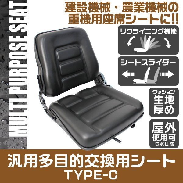 - 多目的 オペレーター シート 交換用 座席 防水 汎用 スライダー付 リクライニング機能付き 農機 フォーク リフト トラック ユンボ Cタイプ
