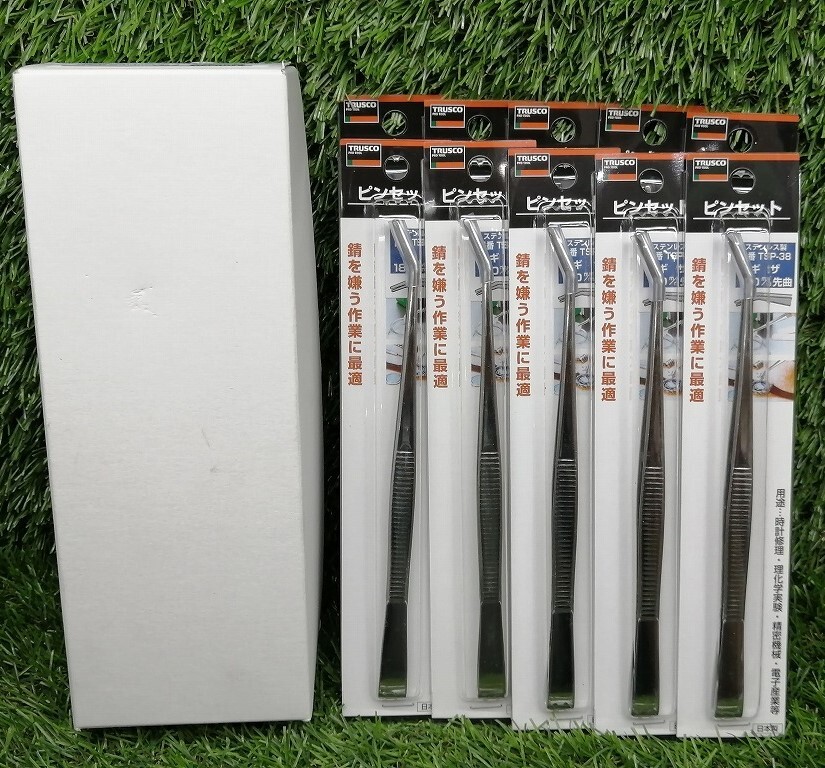 - 未使用品 TRUSCO トラスコ 180mm 曲ギザ付 ステンレス製 ピンセット TSP-38 10本セット