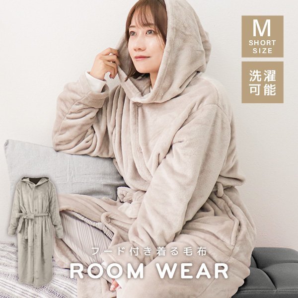 - 着る毛布 フード付き Mサイズ ショート ルームウェア 洗える あったか かいまき毛布 部屋着 パジャマ おしゃれ レディース メンズ 北欧
