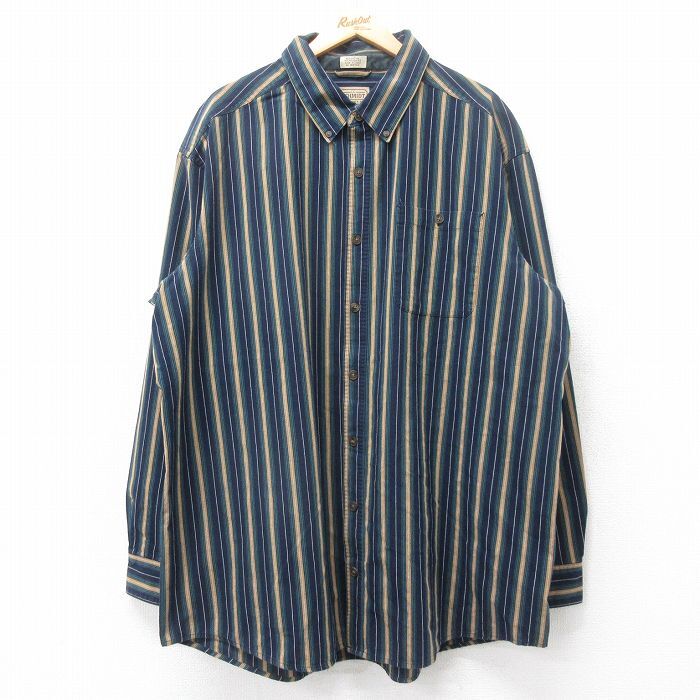 > XL/古着 長袖 シャツ メンズ 大きいサイズ ロング丈 ボタンダウン 緑他 グリーン ストライプ 25sep12 中古 トップス
