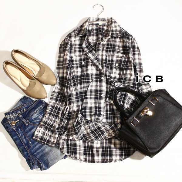 - 美品 オンワード樫山 iCB アイシービー 綺麗め 2Wayカシュクール スナップボタン コットン 長袖シャツ 0号 春 秋 25D08