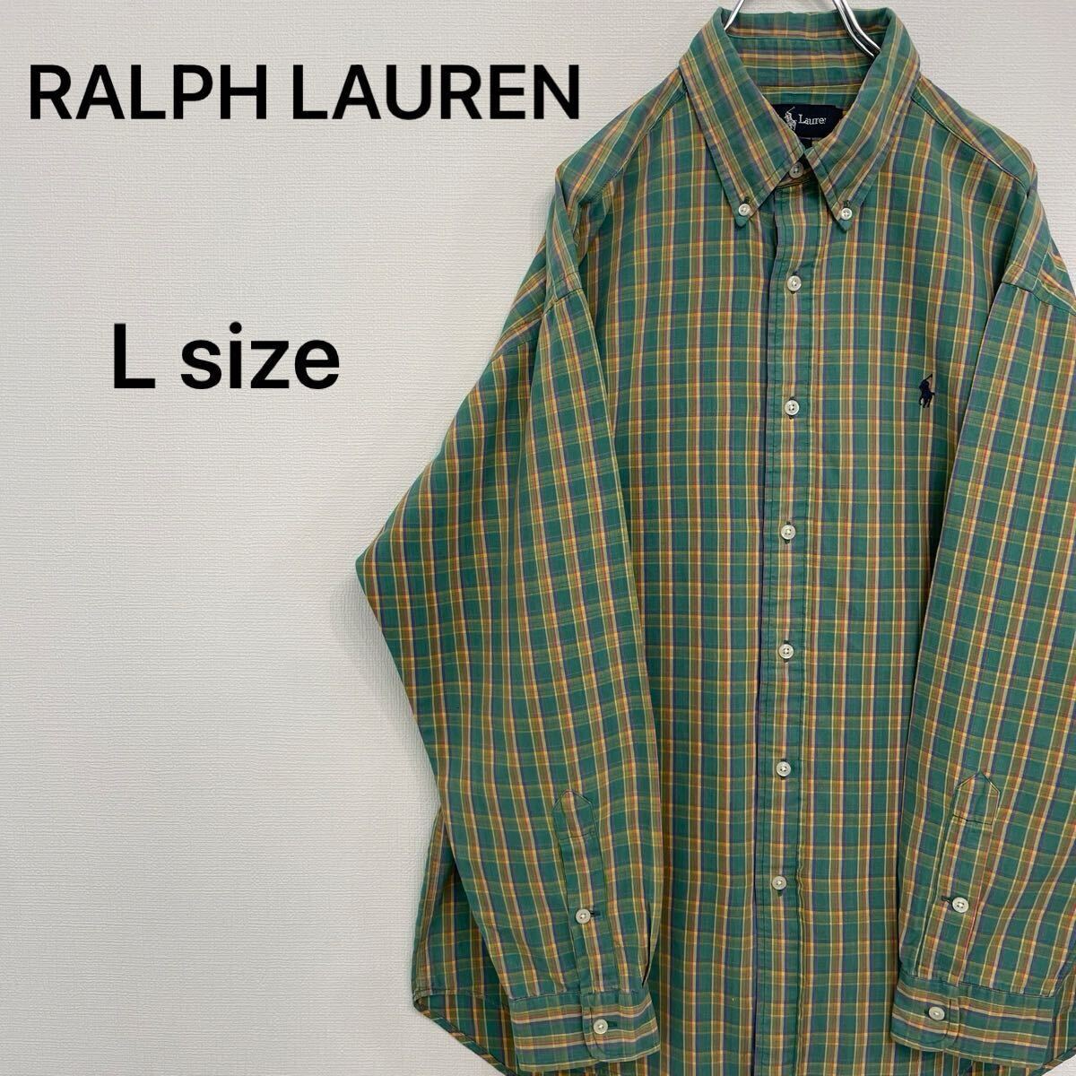 - 【731】 RALPH LAUREN ラルフローレン 長袖シャツ チェック 緑 ロゴ刺繍 メンズLサイズ 綿100% BRAIRE