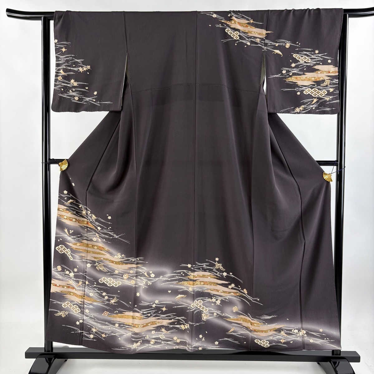 > 訪問着 身丈156cm 裄丈65.5cm M 袷 霞 宝尽くし 金糸 金彩 灰紫 正絹 秀品 【中古】
