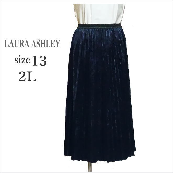 > 〔LAURA ASHLEY〕紺ベロアミモレ丈スカート ローラアシュレイ ロング丈 レディース ゆったりサイズ 13 ☆送料込み