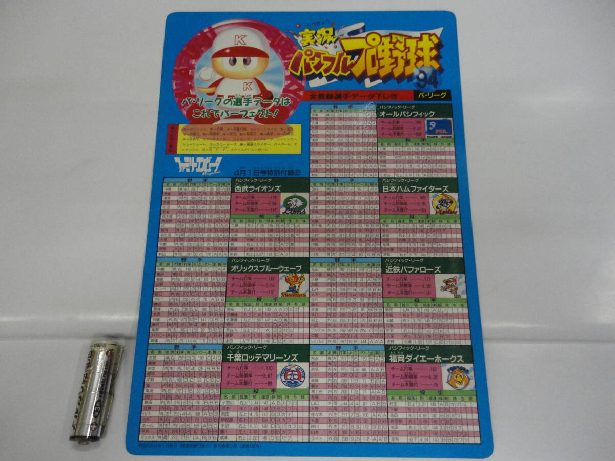 - 当時物 ファミマガ 付録 下敷き 実況 パワフルプロ野球'94
