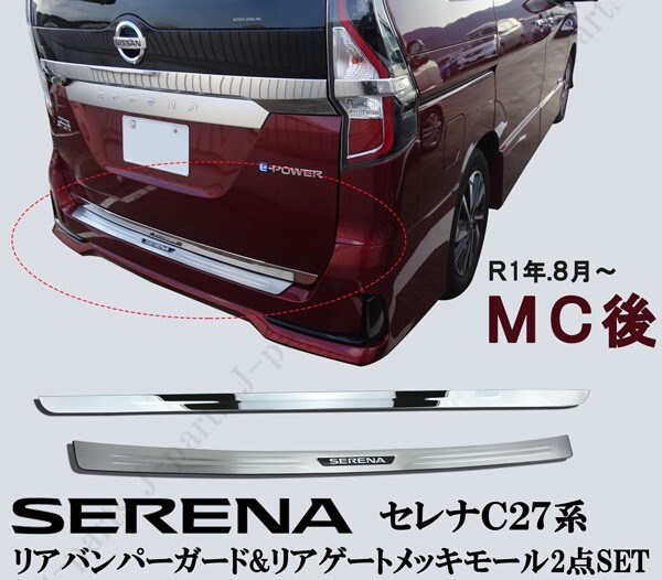 > 日産 セレナ C27系 リアゲートガーニッシュモール&リアバンパーガード2点セット 後期専用 全グレード適合 ステンレス製