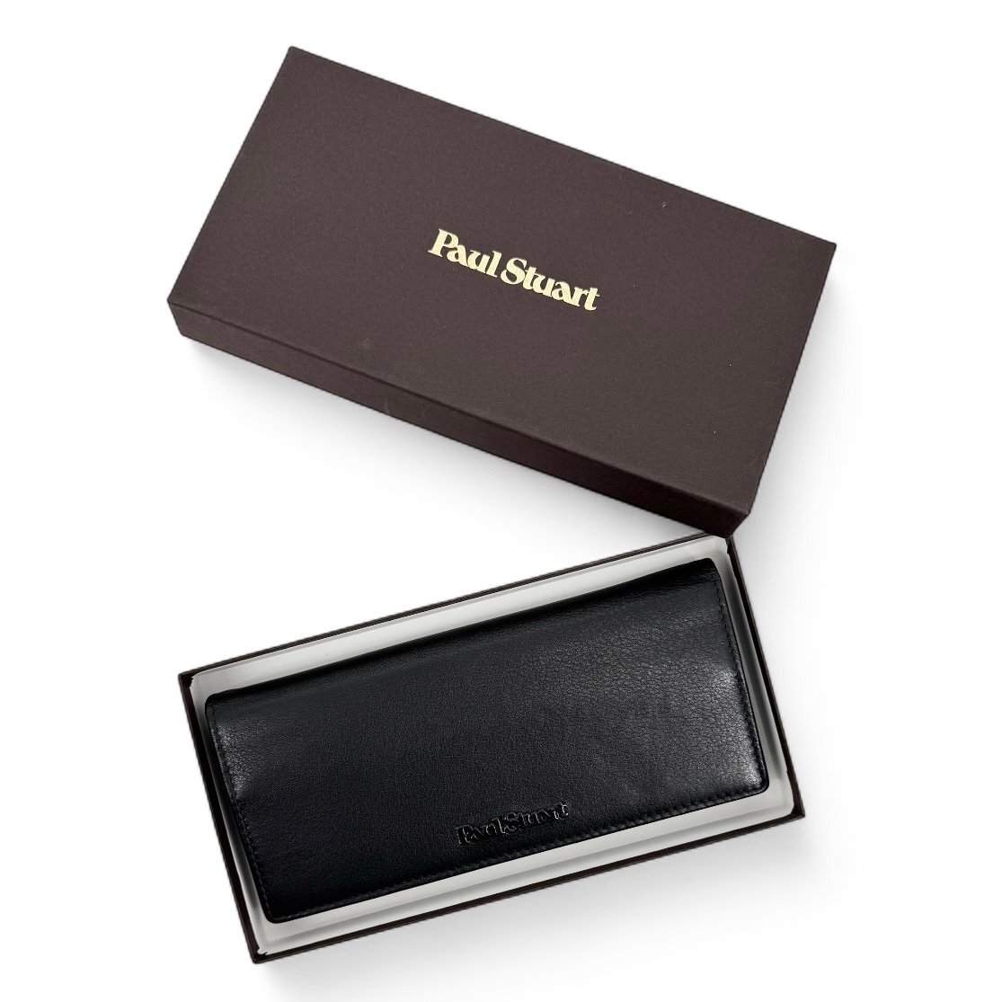 > 未使用品 Paul Stuart ポールスチュアート キップ スキン レザー 仔牛革 本革 二つ折り 長財布 小銭入れあり SP13112 黒/ブラック 箱付