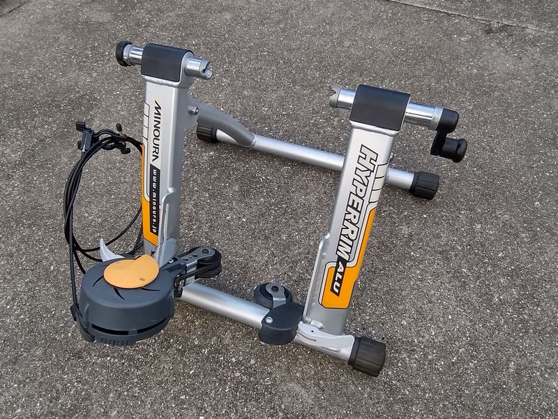 - 送料無料 完動品 珍しいリムドライブ式 小径可 ミノウラ サイクルトレーナー HYPERRIM ALU アルミ製 固定ローラー台 マグローラー minoura
