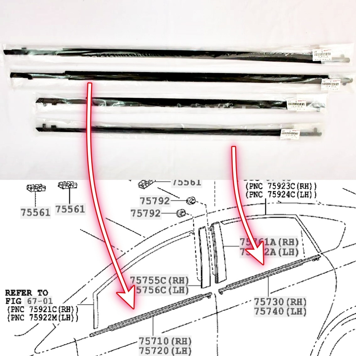 > ☆新品 4本セット☆トヨタ プリウス 30 ドア ベルト モールディング 外側 1台分 水切りモール ウェザーストリップ 窓 ゴム モール 純正