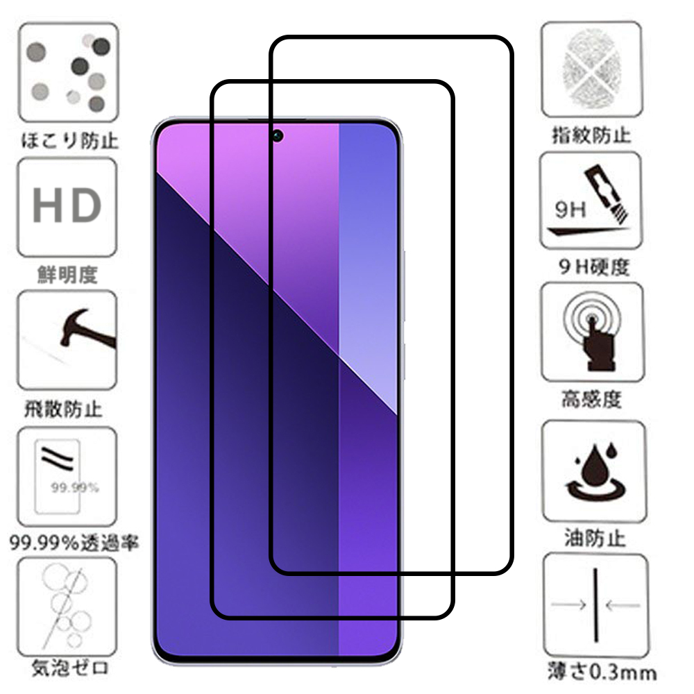 - 黒 2枚入り Redmi Note 13 Pro 5G ガラス フィルム 画面 保護 XIG05 レッドミ カバー 頑丈 シール シート スクリーン Glass Film 9H 高透