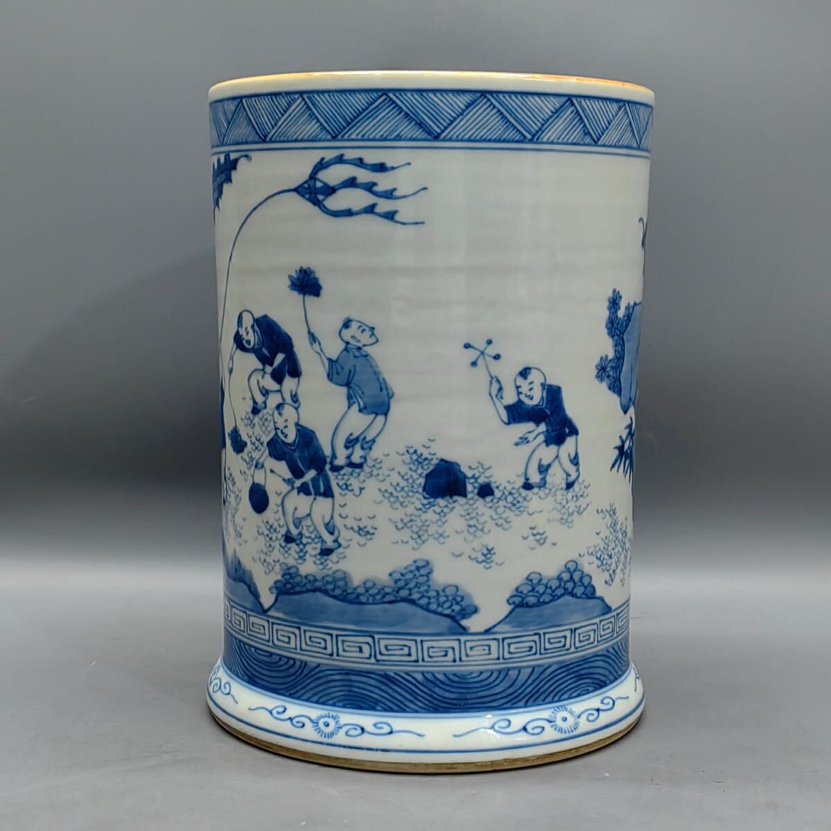 - 【竹華】中国古美術 明時代 青花 筆筒 骨董品 古玩 骨董 時代物 当時物 唐物 古置物 乾隆年製 古擺件 mu 16