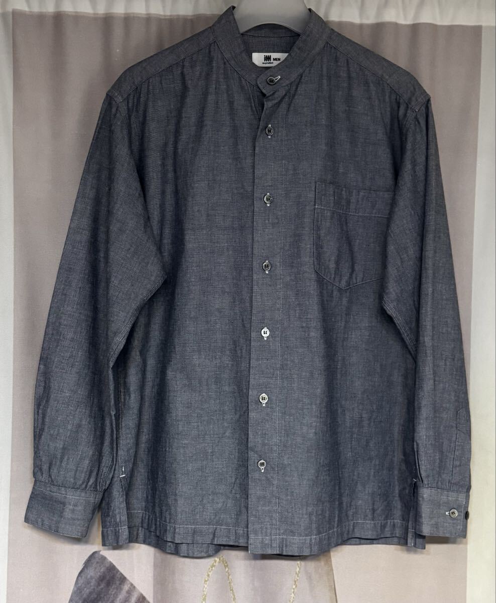 - イッセイミヤケ メン アイムプロダクト シェルボタン バンドカラーシャツ グレー