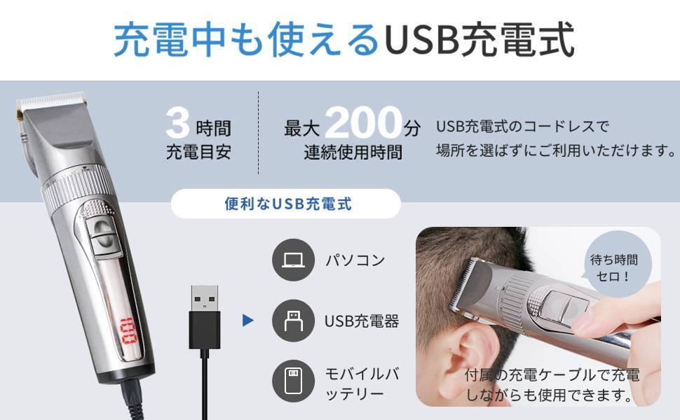 - コードレス 5段階刈り バリカン USB充電式