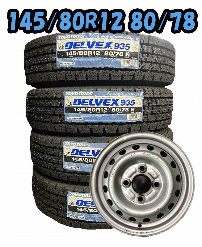 - 2025年製 145/80R12 80/78N TOYO DELVEX 935 新品 スタッドレスタイヤ/中古鉄ホイールセット【組み付けバランス無料】