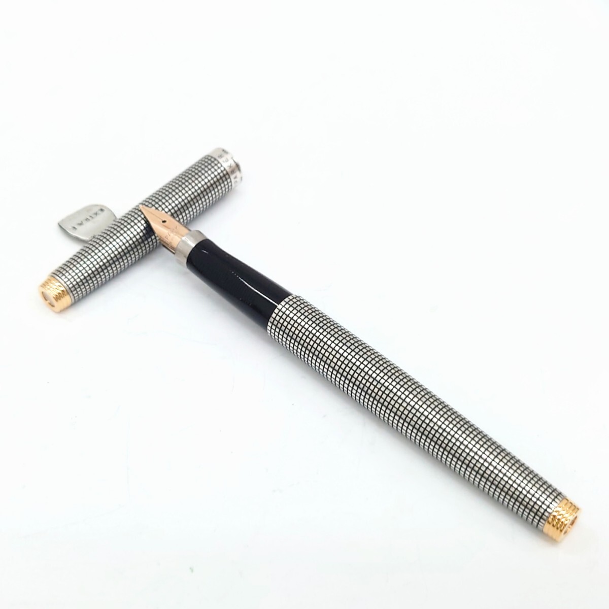 - 吉【ペン先14K】PARKER パーカー シズレ 格子柄 75 万年筆 STERLING CAP & BARREL スターリングシルバー XF ⑩