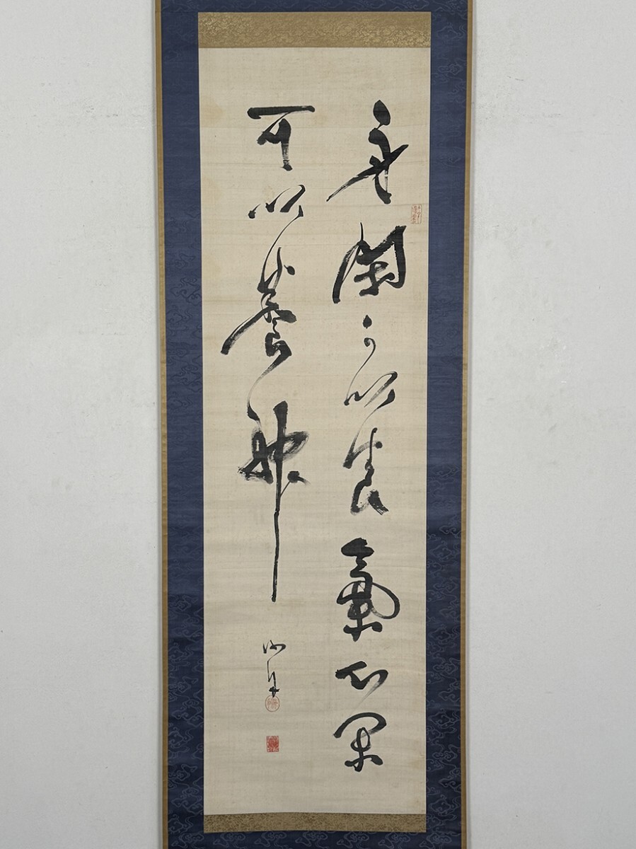 - 【真作 佳品】掛軸「勝海舟 二行書」読み有 幕末明治 幕臣 軍艦奉行 幕末三舟 大政奉還 書