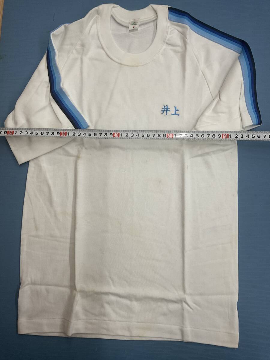 - M レイバン 体操着 体操服 青 グラデーション ライン 未使用 保管汚れ 記名 東京 大久○ 中学指定 廃盤品 デッドストック 昭和レトロ