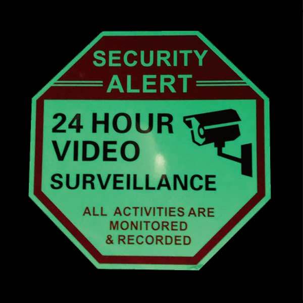 - 蓄光看板 セキュリティサイン[24H 防犯カメラ] OCTAGON/八角形 プレートサイン SECURITY SIGN アメリカン雑貨 インテリア雑貨 警告 蛍光