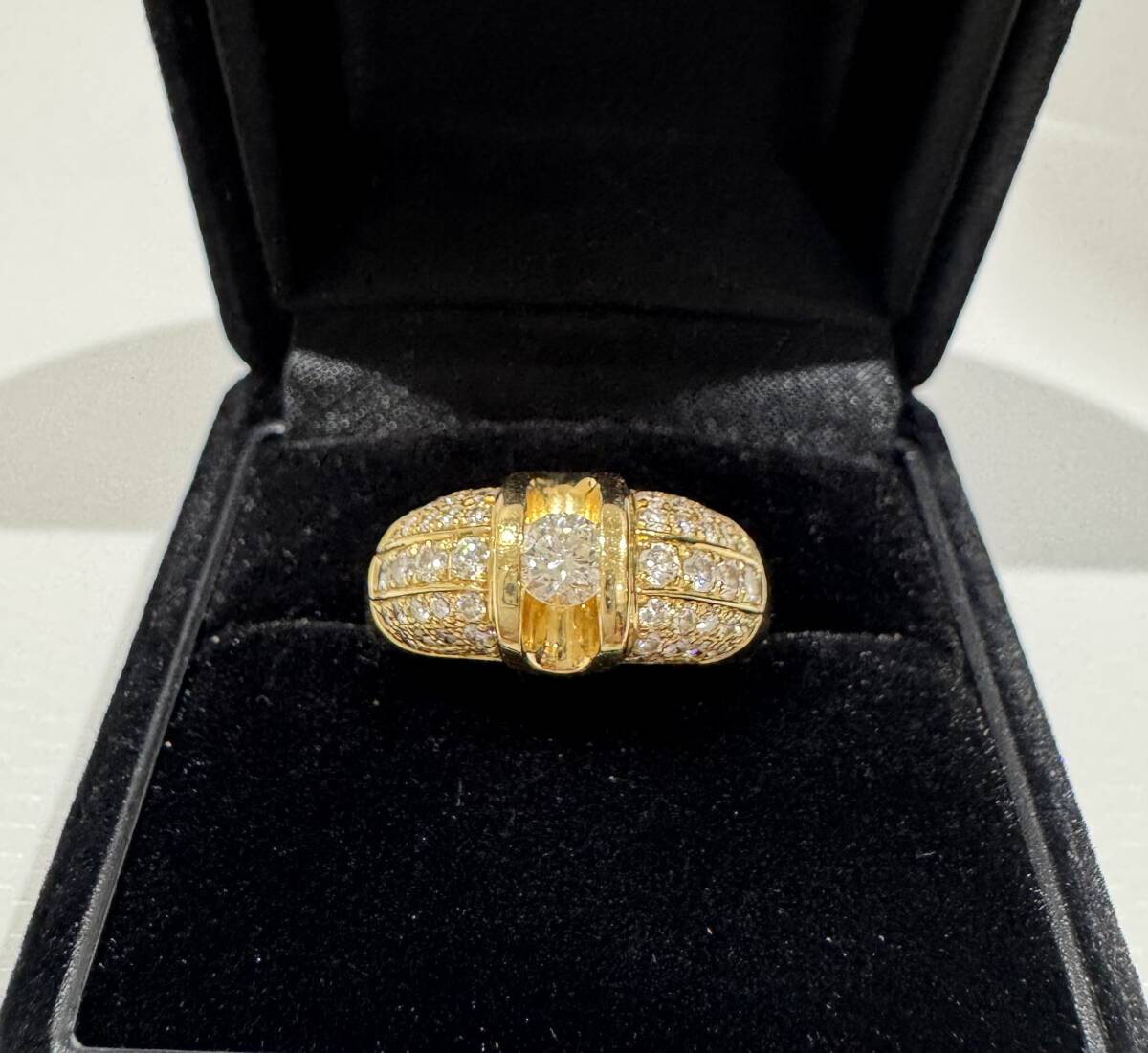 > 【極美品】K18 ダイヤモンドリング 13号 中石D0.317ct/脇石D0.644ct 立体デザイン 総重量10.0g ジェンダーレス