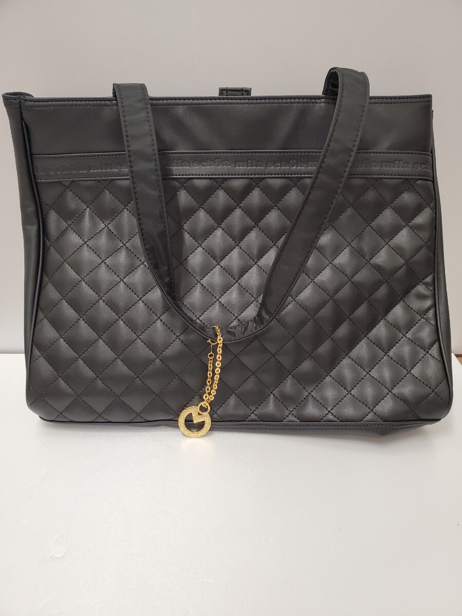 - MI★1円~保管品 mila schon ミラショーン トートバッグ 黒 ゴールドチャーム 型崩れあり