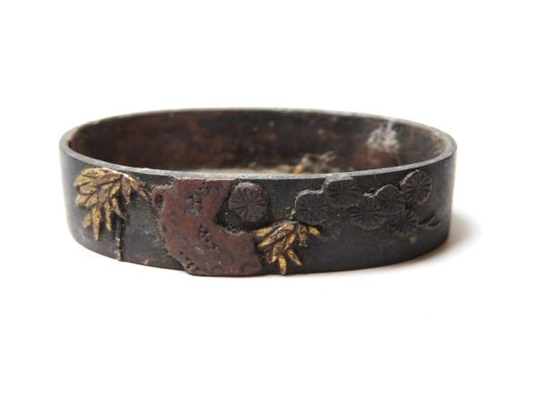 - 【11902】刀装具 江戸~明治 赤銅 松彫 縁(初品・買取品)
