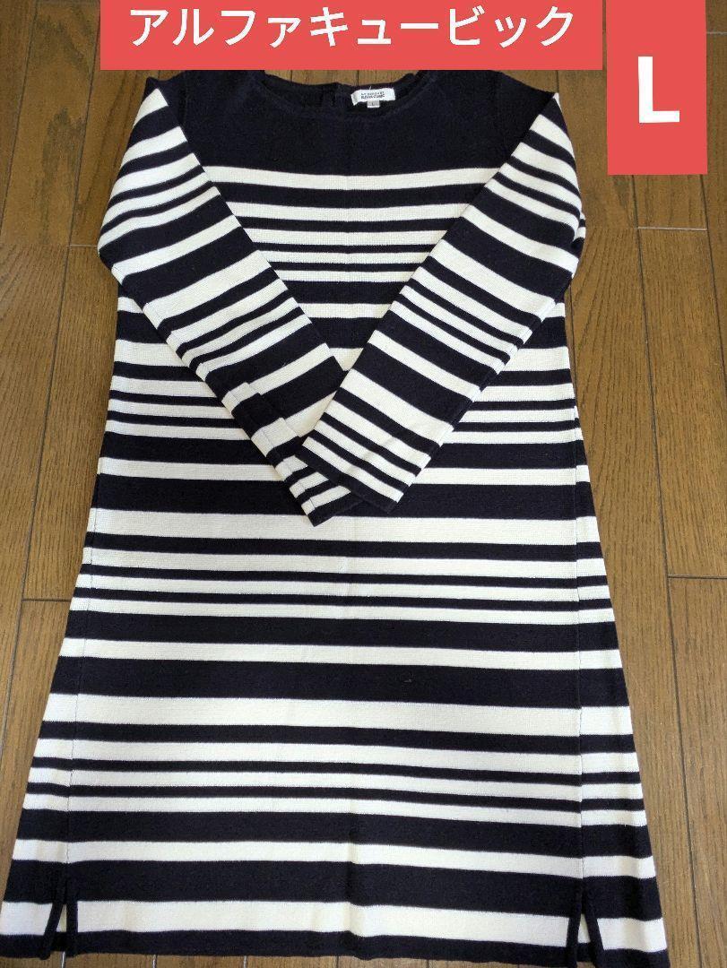 - 【アルファキュービック】ボーダー ニットワンピース★ネイビー×白★L