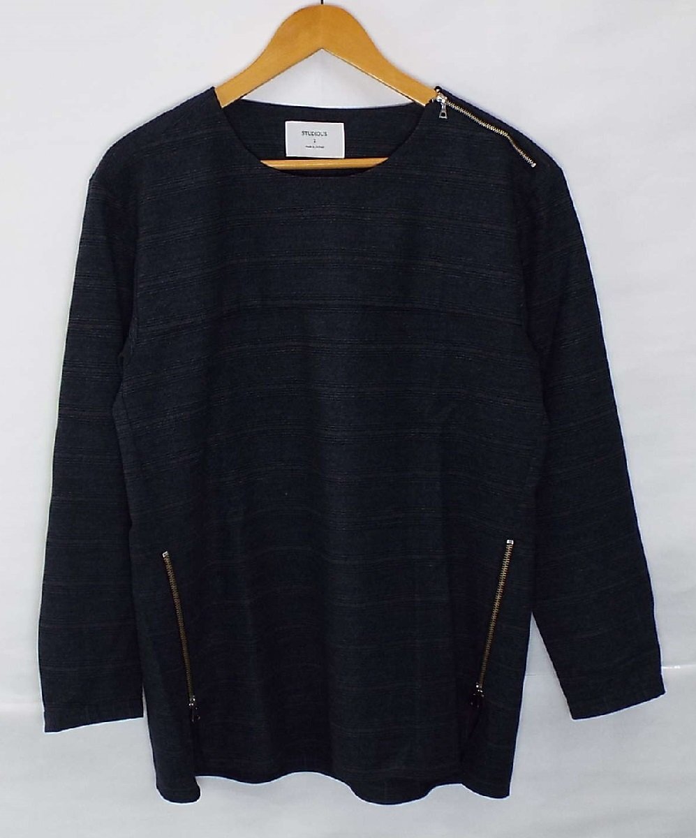 > R124〇STUDIOUS/ステュディオス ウール混 プルオーバー サイドジップスリット 長袖 シャツ シャドーチェック ボーダー サイズ2