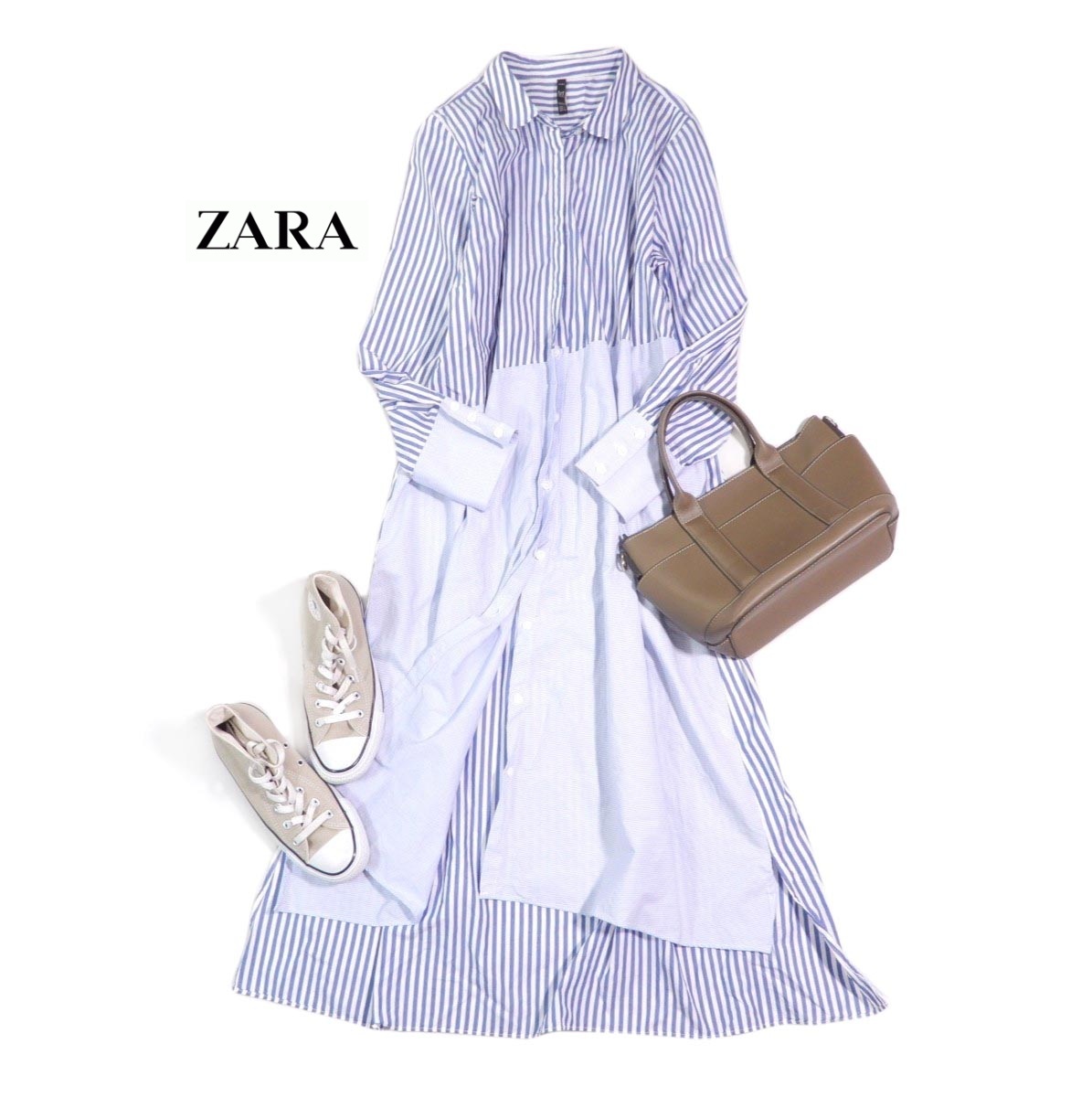 - ザラ ZARA TRF 大人素敵スタイル☆ストライプ シャツ ワンピース L