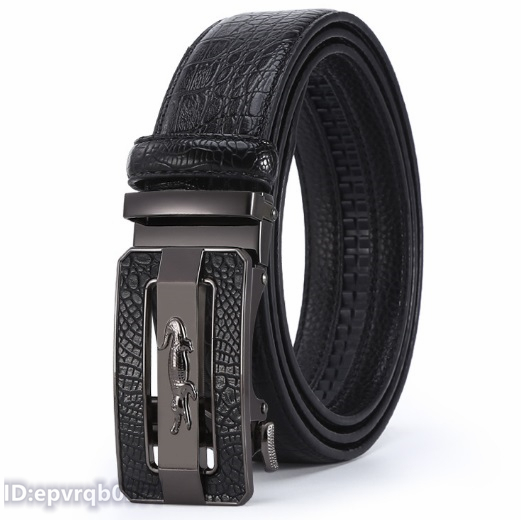 > レザーベルト※新品 オートロック式 ゴルフベルト ワニ柄 金属バックル 本革牛革 メンズベルト 幅3.5センチ 紳士 長さ調整可能 /黒