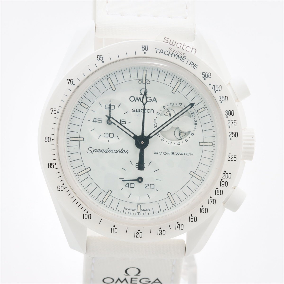 - ■ 1円 ~ 正規 現行 美品 ■ オメガ × スウォッチ OMEGA × swatch ミッション トゥ ザ ムーンフェイズ 白 スヌーピー ムーンスウォッチ