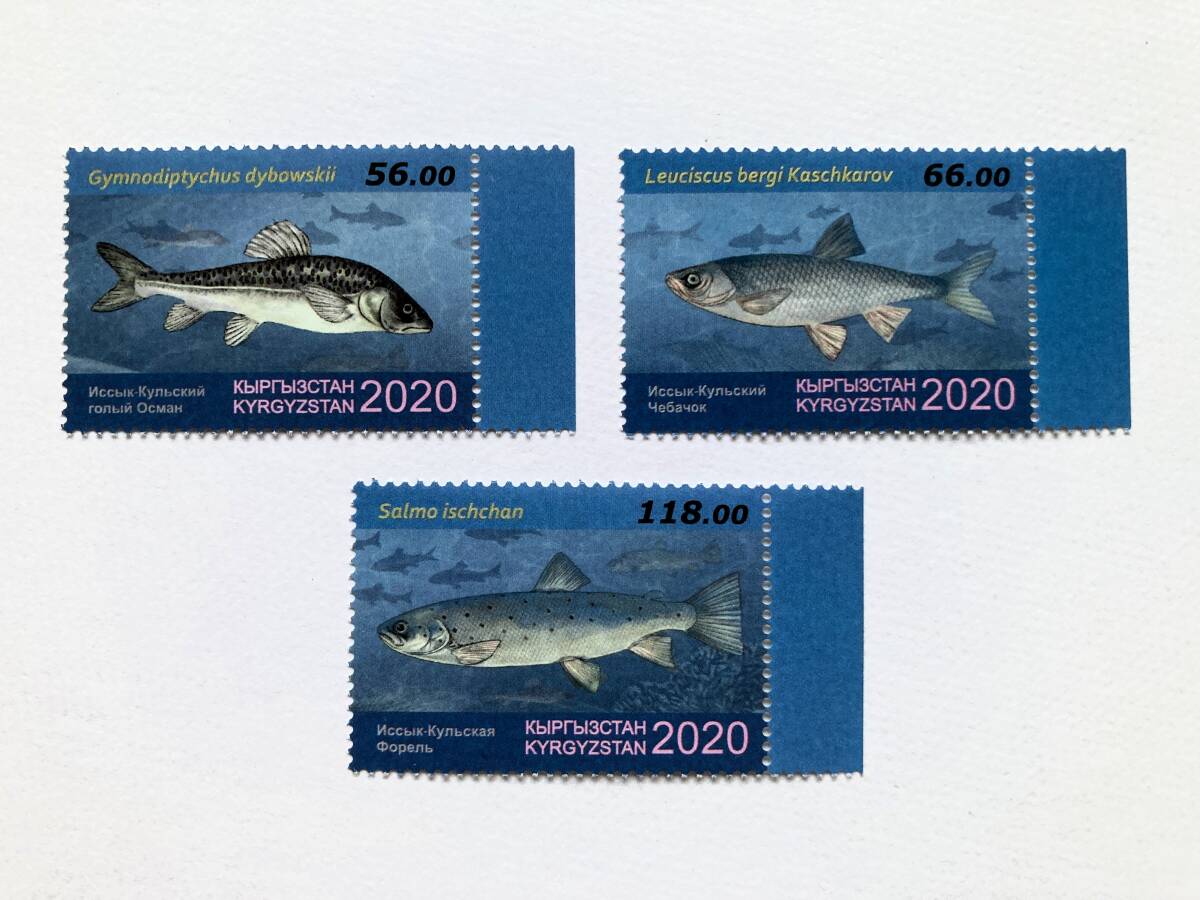 - 外国切手: キルギスタン切手 「イシククル湖の魚」(裸黄瓜魚 ほか)3種完 未使用