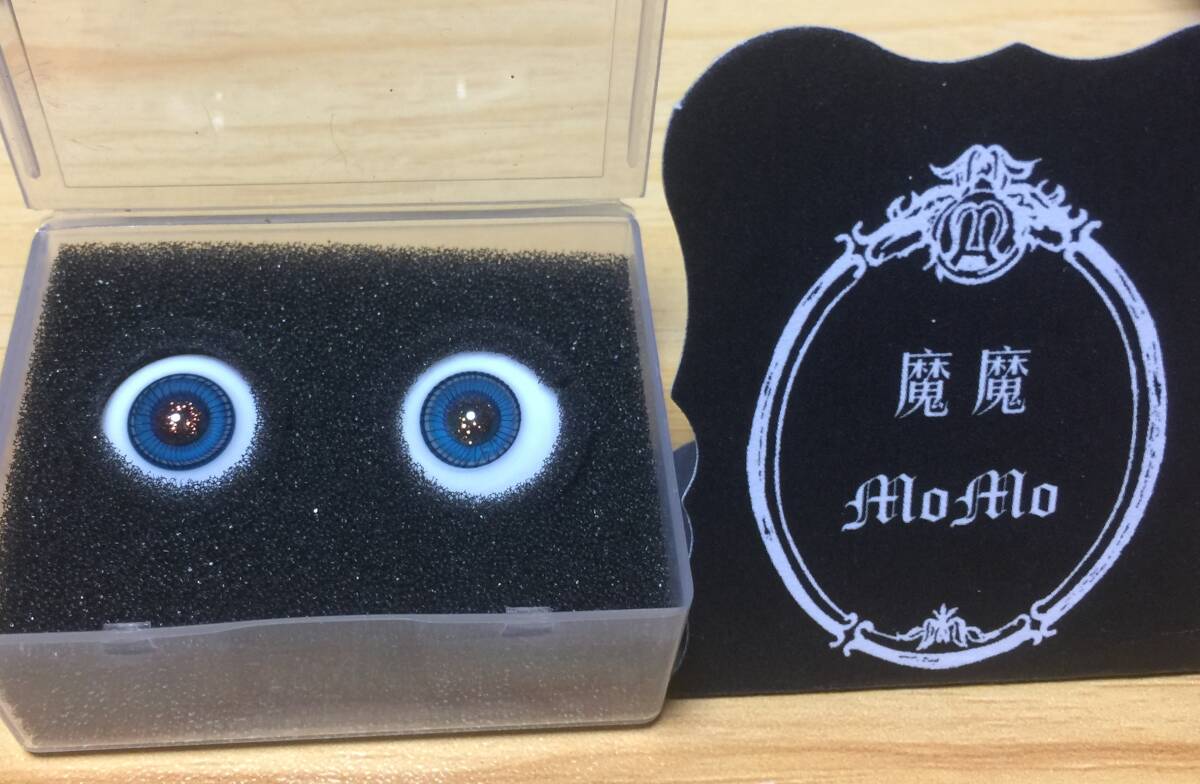 - 魔魔★グラスアイ 16mm 虹彩あり 瞳孔ラメ入り 花浅葱色/ブラック虹彩★新品