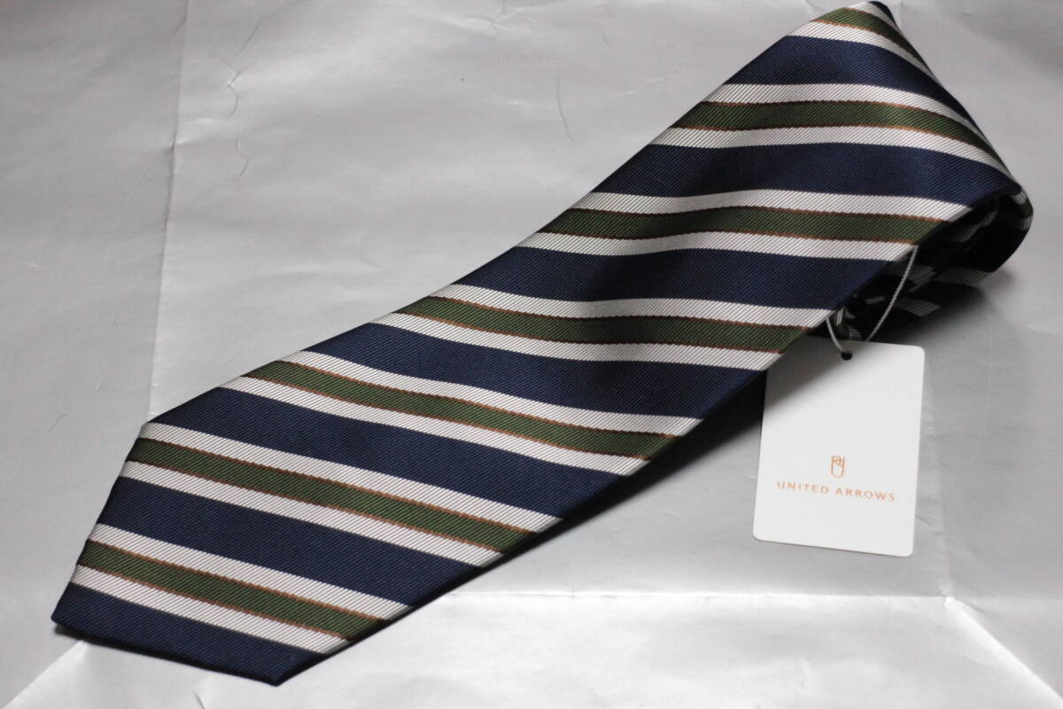 > ユナイテッドアローズ新品ネクタイ超華麗艶ネイビー*シルバー*ブラウン*グリーンレジメンタル重厚ツイル織オルタネート柄ハンドメイド